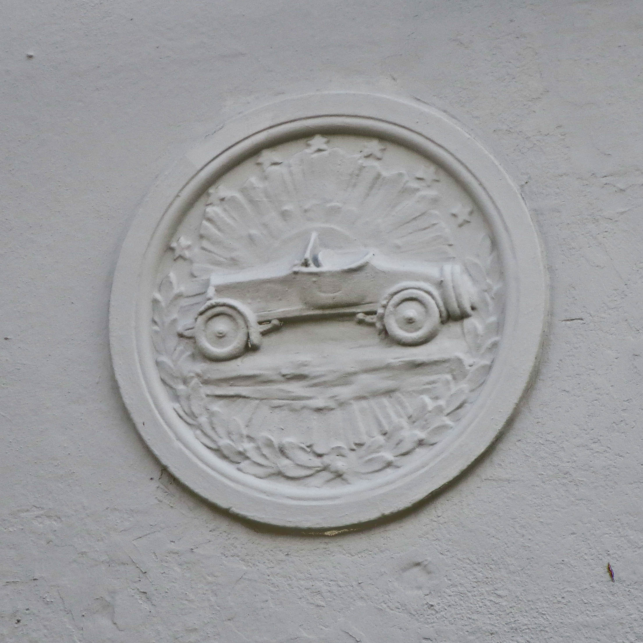 It’s a fun element, because it’s a representation of a late 1920s Chevrolet that’s baked into the building facade, rather like a bug in amber.
