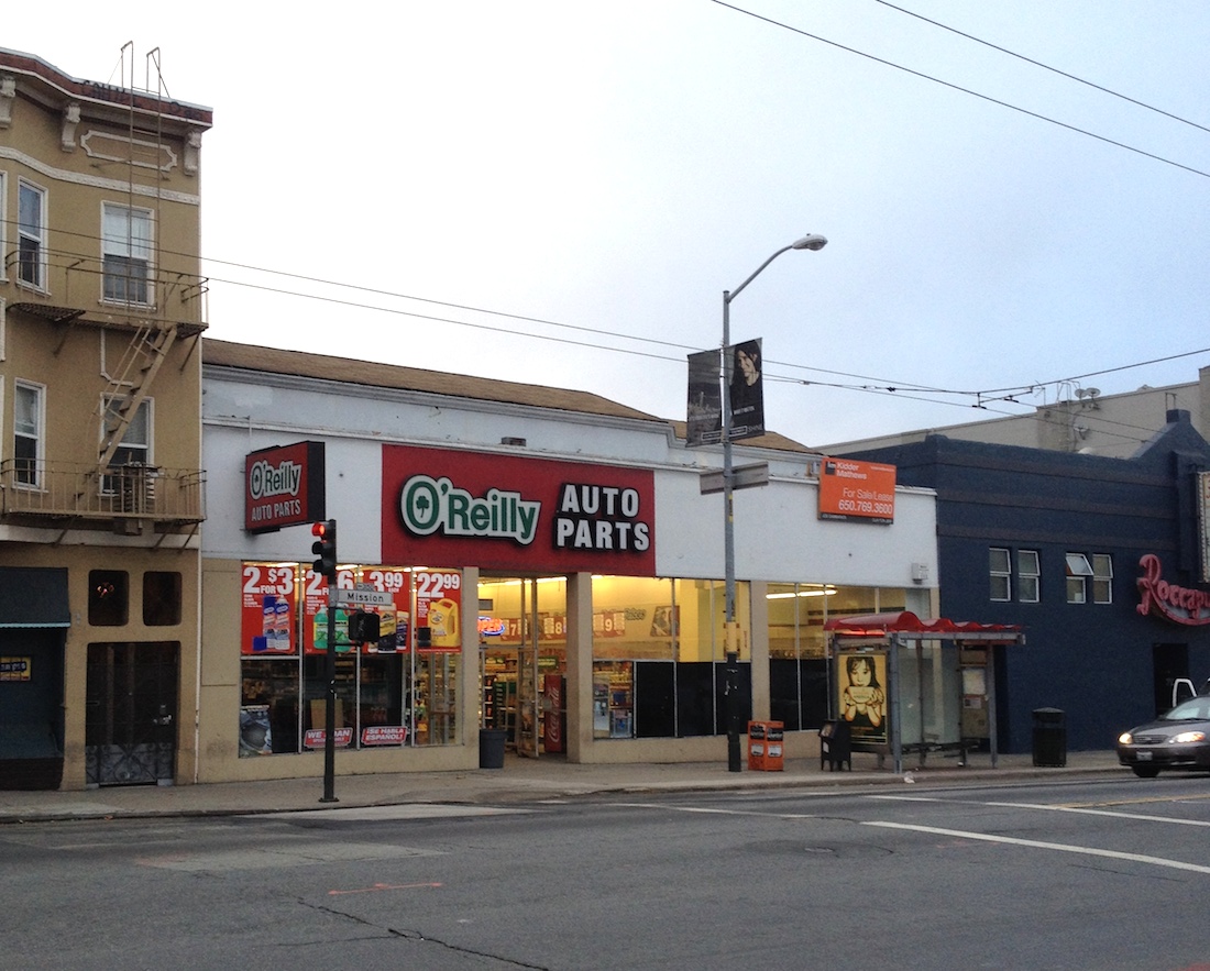 Recently, Bernalwood noticed a big For Sale/Lease sign on the facade of our locavore auto partsmonger, the stylish O’Reilly store on Mission at Precita.