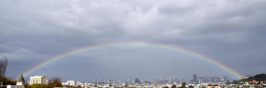 Sure enough, at around 11:30 am Bernal Heights neighbor and celebrity sci-fi writer M. Luke McDonell documented the above, a confirmed Full-Arc Rainbow, as seen from her Precitaville observation post. Based on the observed prismatic trajectories, Bernalwood estimates that residents of Duboce Triangle and China Basin may have experienced rainbow-induced euphoria as a result.