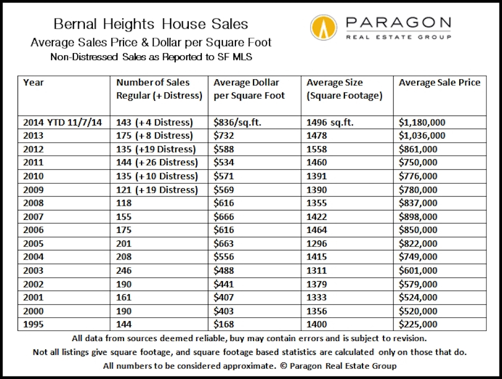 In another recent Paragon report, we spotted this longer-term snapshot of contemporary Bernal Heights real estate history: