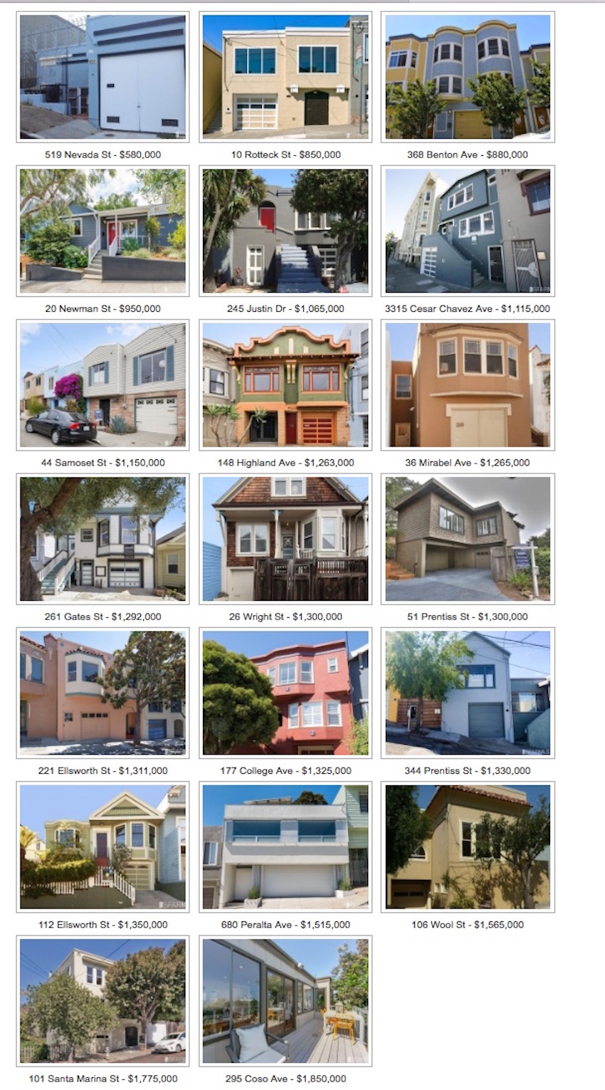 Let’s review some fresh-squeezed real estate data, shall we? We begin with a summary of recent Bernal Heights home sales, compiled by Downing & Company: