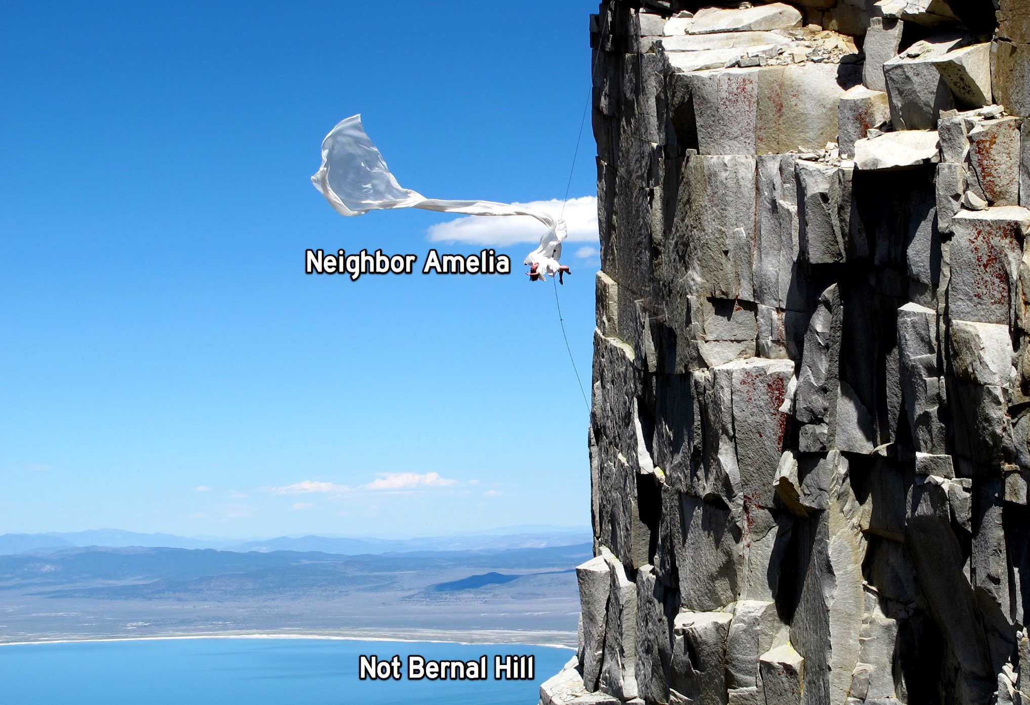 Wanted to let you know about a very cool project Bandaloop is doing. Bandaloop founder/artistic director Amelia Rudolph and myself are both Bernal residents. Bandaloop is the Bay Area’s premiere vertical dance company, and in 2015 we are re-mounting the seminal mountain work “Crossing” in the Sierra. We have seed funding from the National Endowment for the Arts, but we need to more than double it to build the piece. We started a RocketHub campaign and are about 30% funded, with a goal of $25,000 by 12/17/14.