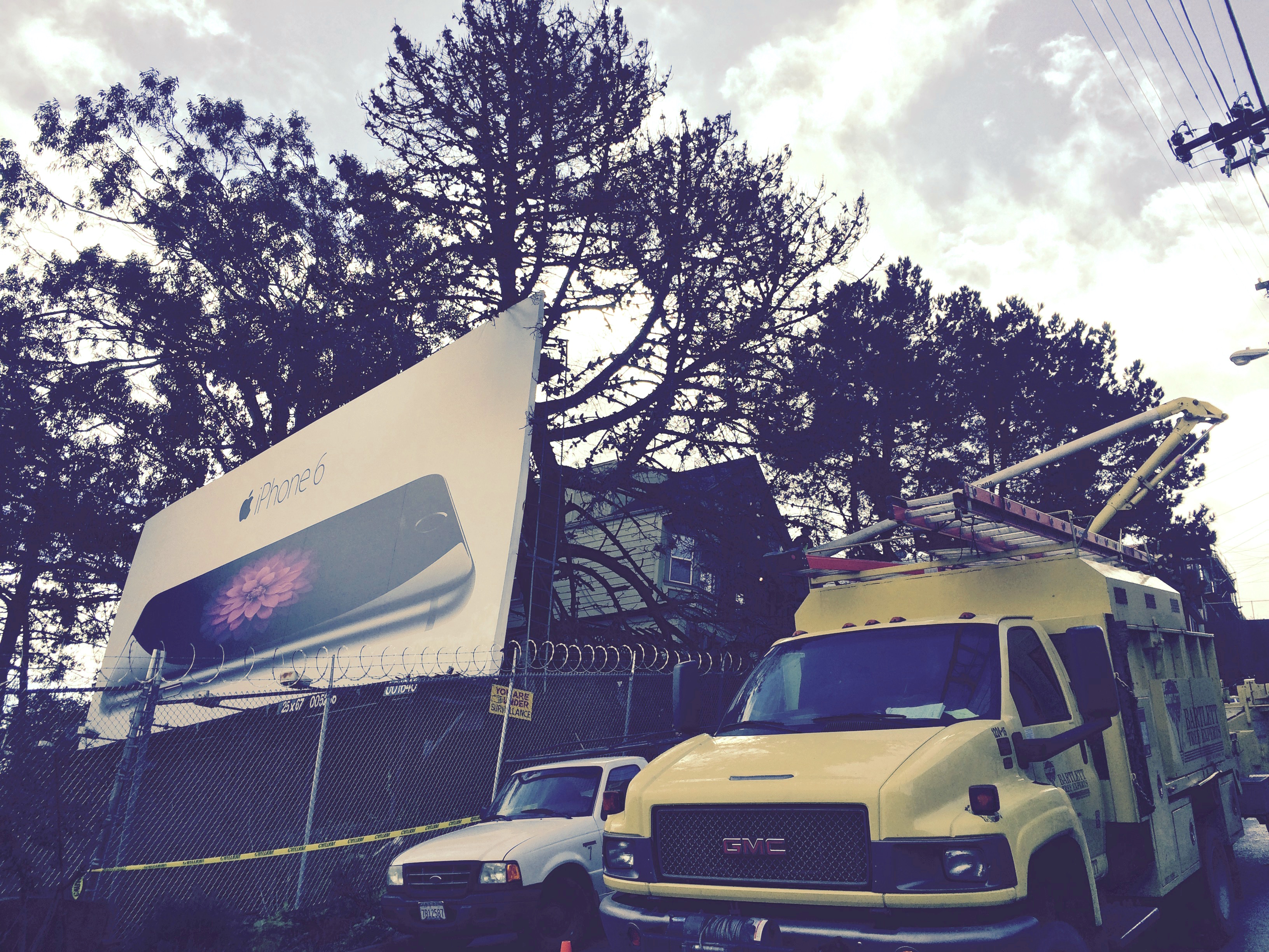 Of course, it wasn’t merely the Apple billboard that arrested the trees fall. Bernalwood’s sources tell us it was the ghost of Steve Jobs himself that reached into our world from the next to protect lives and property from harm. Extra Bonus: No appointment at the Genius Bar required!