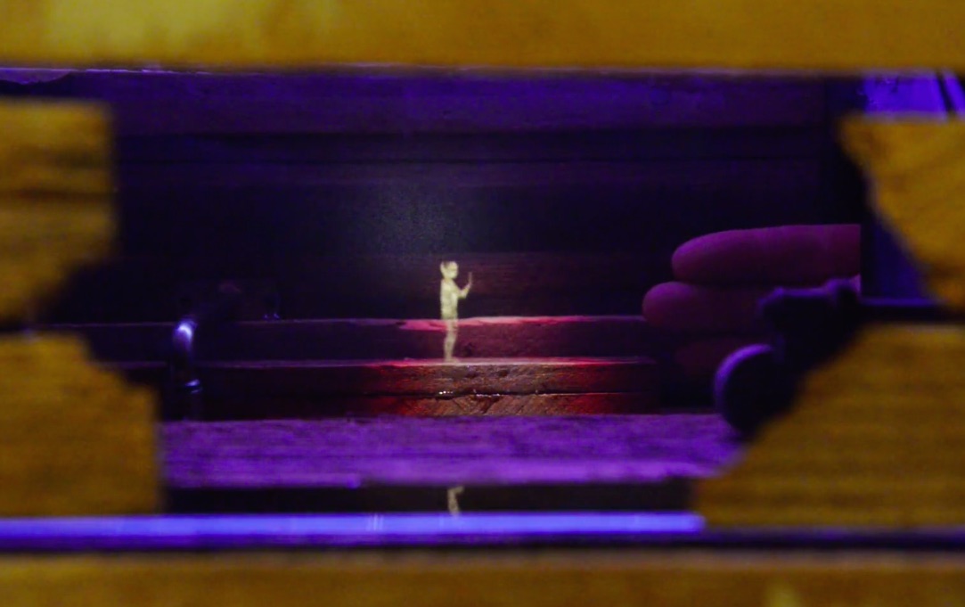 My piece, Sleepwalkers, is an interactive installation about beings that live inside the walls of that old building. It uses host of techniques to make it seem that a three inch tall luminous being is interacting with the physical world—including the hands of participants—while illuminating its environment.