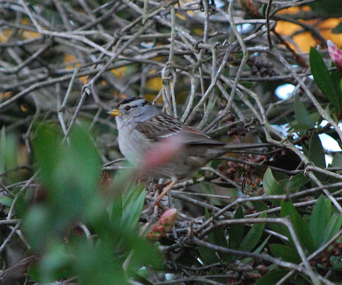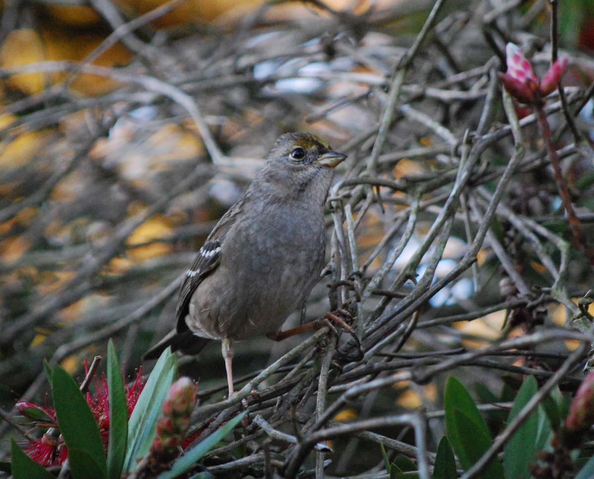 The second is the Golden Crown Sparrow, also in the first winter plumage. While you can clearly see the gold color on its head, the color will brighten as we head into spring: