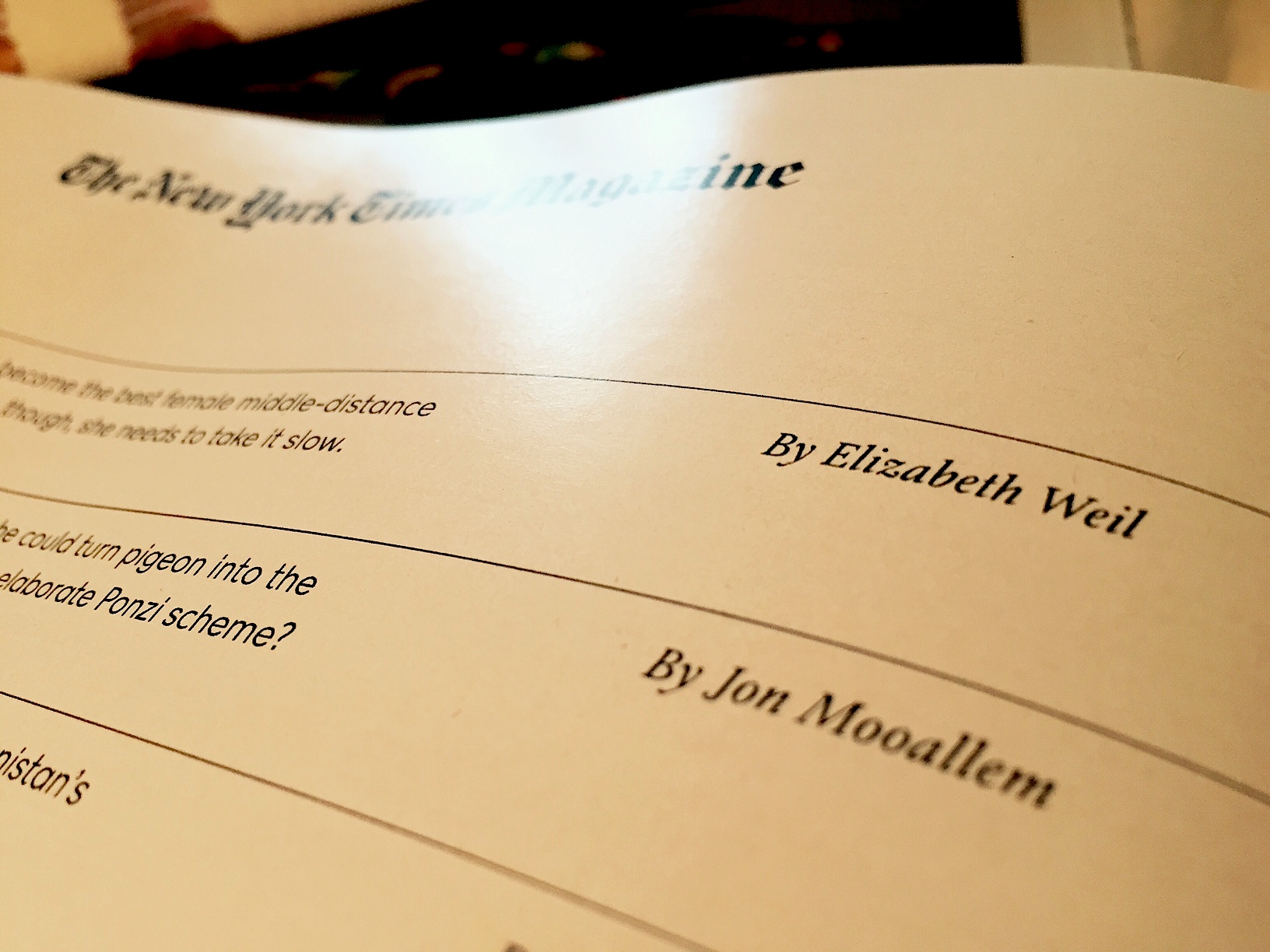 PHOTO: New York Times magazine table of contents, March 8, 2015 by Telstar Logistics