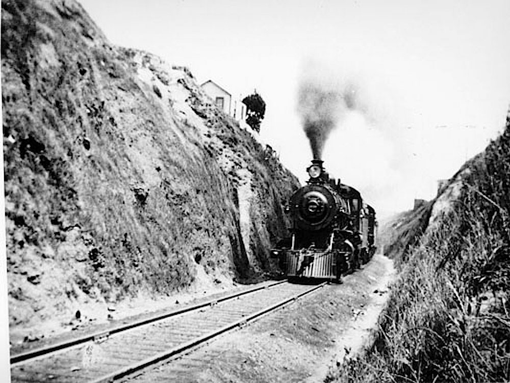 Throw in some smokey steam locomotives, and you can see why The Cut became particularly daunting to cross. This is a train chugging through the Bernal Cut in 1905: