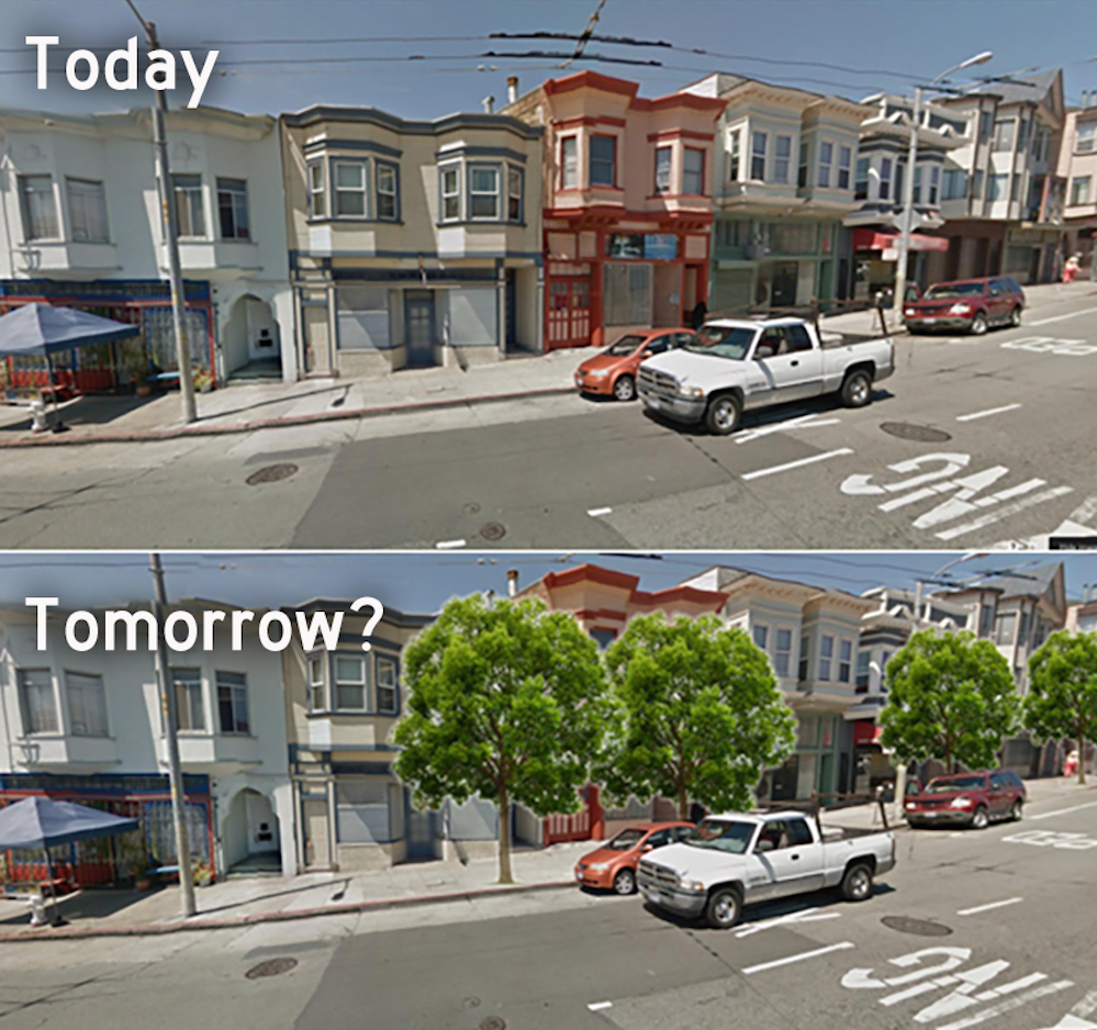 I’ve created some images to show how the plantings could look. As I’m sure Bernalwood readers will agree, the addition of the trees would add appeal and vibrancy to the neighborhood.