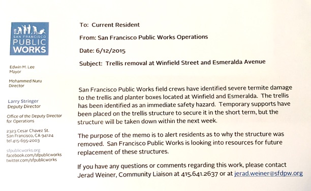 https://bernalwood.wordpress.com/2015/06/22/trellis-at-esmeraldawinfield-mini-park-slated-for-demolition-city-apparently-has-no-plan-to-rebuild/