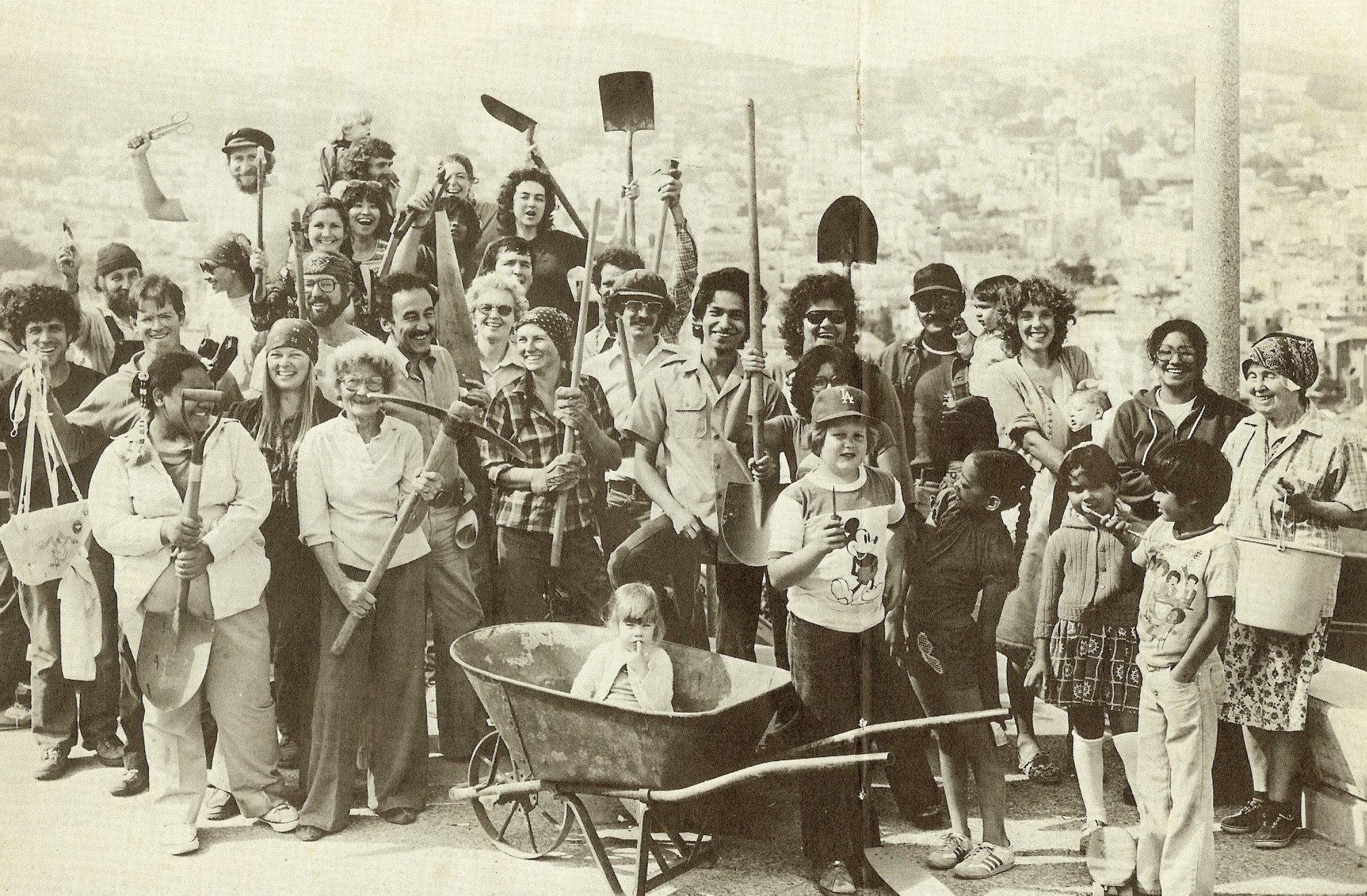 Many Bernalese will recognize the photo, because to this day it stands as a defining symbol of Bernal Heights activism, engagement, volunteerism, and neighborly solidarity. The image is a magnificent time-capsule, so Bernalwood encourages you to zoom and enhance it at your leisure from the safety and comfort of your own computer screen to explore all the wonderful details it reveals.