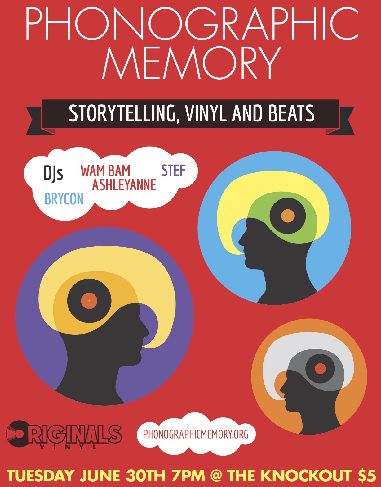 For June, we have a very special edition of Phonographic Memory planned for you. We’re throwing a party! We’re making the trek from our usual spot at the Bernal Library down the hill to The Knockout, because libraries close early, and we want to party together all night long.
