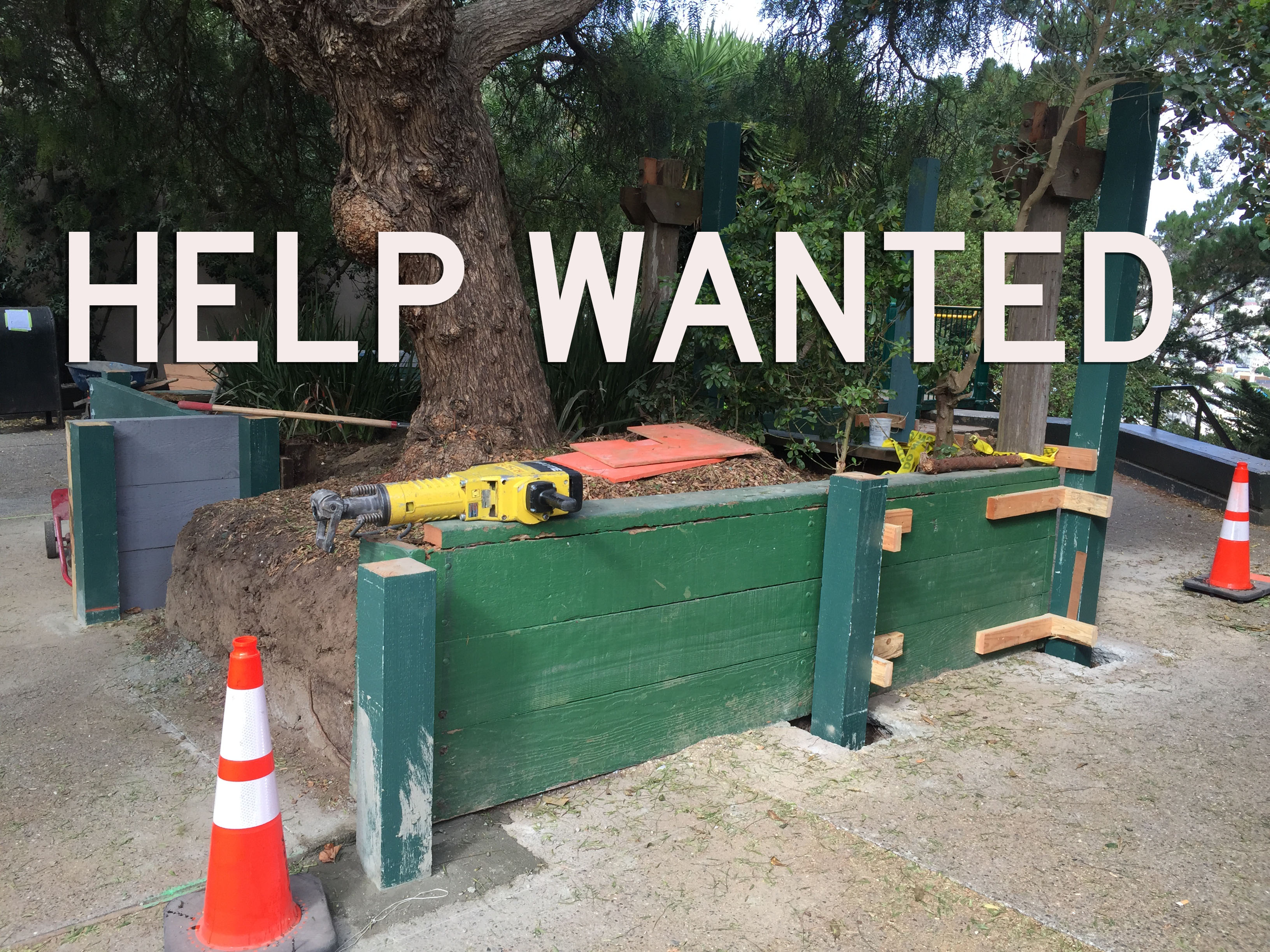 Work is now underway to restore and rebuild the Esmeralda Mini-Park, with much thanks due to Neighbors Nancy and Joan, who are wrangling the City bureaucracy to ensure that the project is done right. There’s much to be done, so in the grandest and most historic Bernalese tradition, Nancy and Joan are organizing a Neighborly Volunteer Work Day this Saturday, August 8 to get stuff done: