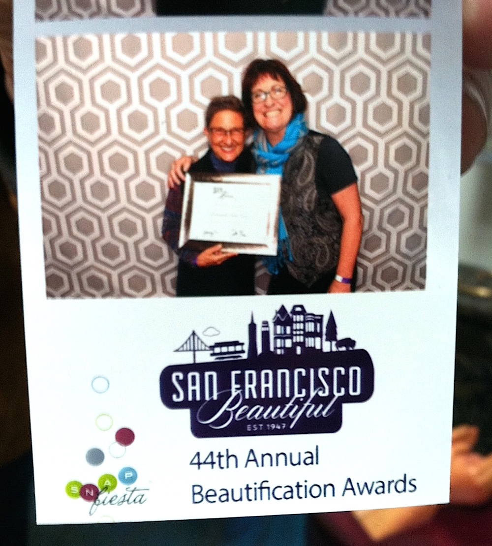 Blighted by the decaying forces of time, The City had to remove some of the wooden structures before they collapsed. Then came the rallying cry, and the heroic volunteer effort, and then the mini-park was restored and reborn. And now it’s won an amazing beautification award from San Francisco Beautiful.