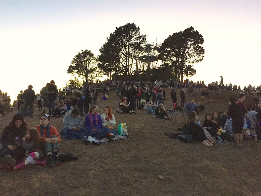 At sunset last night, a massive crowd of hundreds of people gathered on Bernal Hill to watch a once-in-a-generation event: a supermoon lunar eclipse. PBS Newshour explained what the fuss was all about: