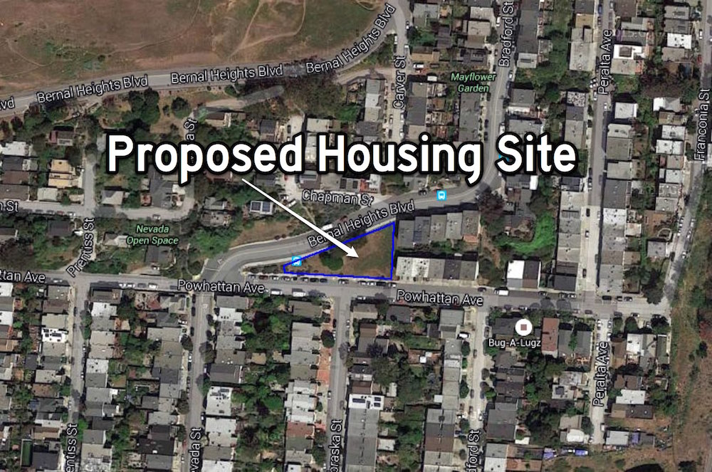 A group of Bernal neighbors hope the Board of Supervisors will overturn plans to build four new homes on a patch of private land where Powhattan and Bernal Heights Boulevard converge on the south side of Bernal Hill.
