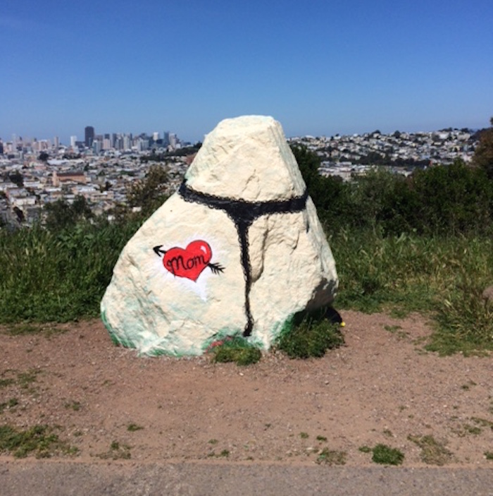 Until now, painted rock on the north side of Bernal Hill has mostly been used as a festive way to celebrate seasonal holidays like Valentine’s Day, Christmas, and St. Patrick’s Day. Also: your mama.