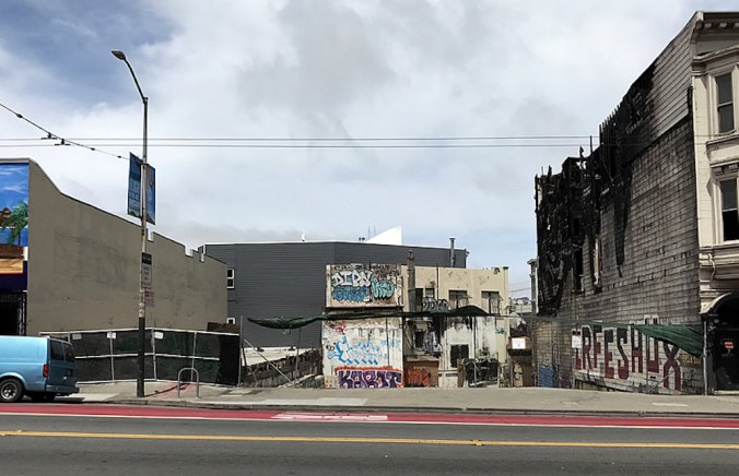 PHOTO: The burned out lot at 3310-3312 Mission, where Cole Hardware once stood. Photo via SocketSite.
