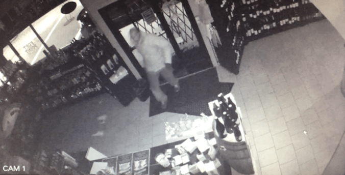 Security camera footage shows the intruder entering Healthy Spirits at 5:30 am.