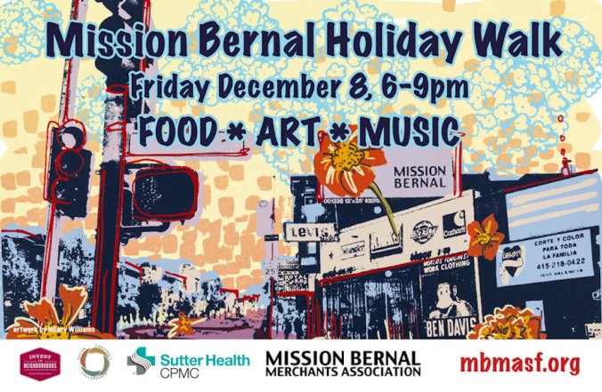 TONIGHT, Friday, Dec. 8 from 6-9 pm, the fabulous merchants, chefs, and barkeeps along the La Lengua stretch of Mission Street will hold the glamorous 2017 Mission Bernal Holiday Walk.