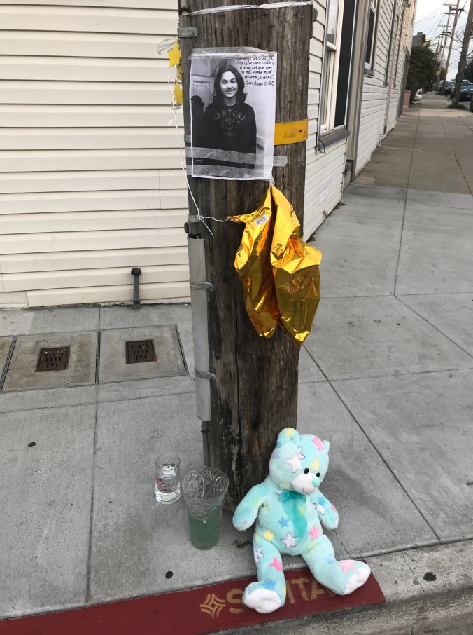 A shrine erected near the spot where Duby Ortiz-Guardado was killed on Jan. 23. (Photos: Courtesy of Emperor Norton)