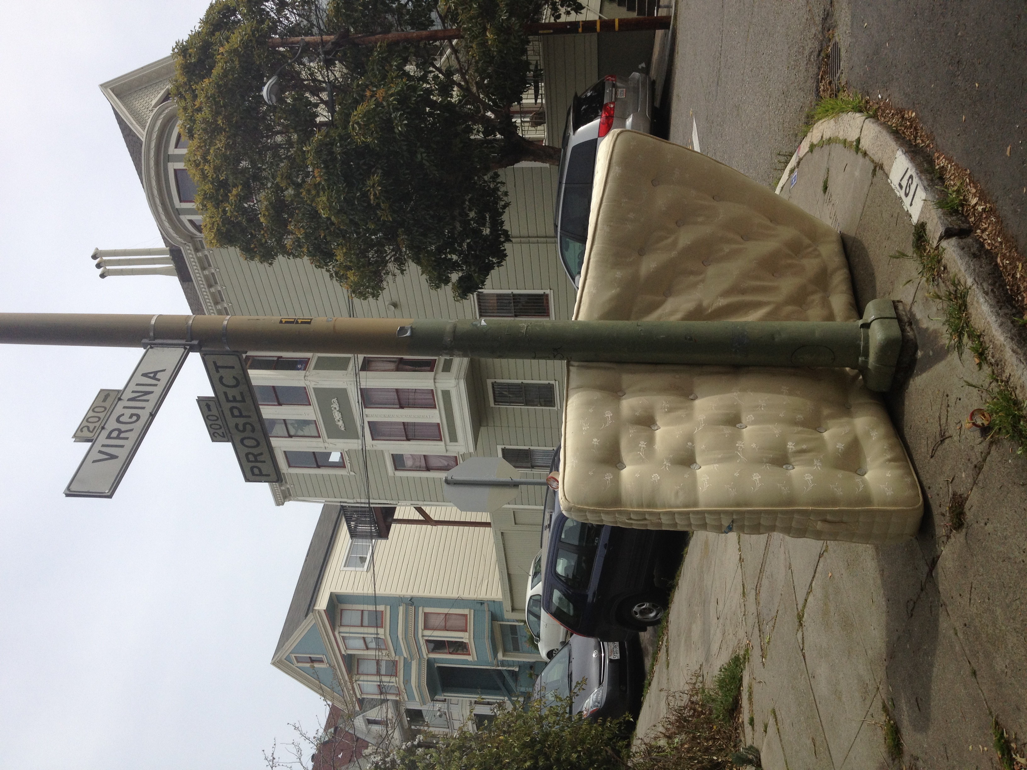 Reason #2: Your stuff is less likely to end up in the landfill. Over 60% of what Recology collects is recycled, public relations manager (and Bernalwood resident!) Robert Reed told me. “If you illegally dump, you’re creating an environmental problem,” he says. “Let’s say you abandon a mattress. How long before a dog comes along and lifts a leg, or it rains? If it gets moldy or something, at least part of that thing is going to just get tossed.”