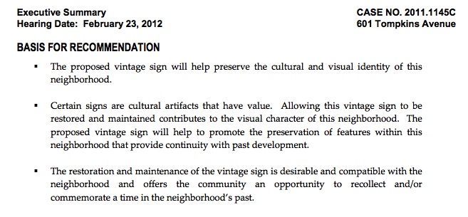 The vote came as a great relief, but in some ways it was not a surprise. Indeed, the Executive Summary of the case written by Planning Commision staff advocated for the preservation of the sign, and for all the right reasons:
