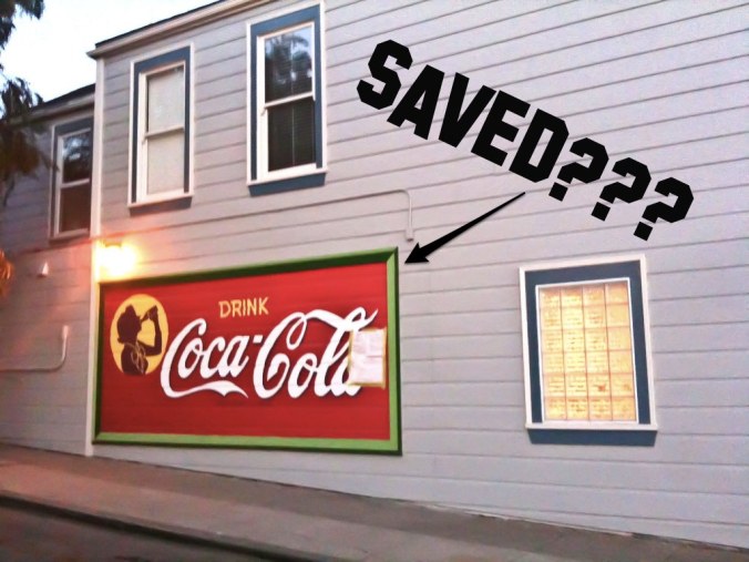 And (… drumroll…) here’s how the Coke artwork looked in 1991, immediately after the siding was removed: