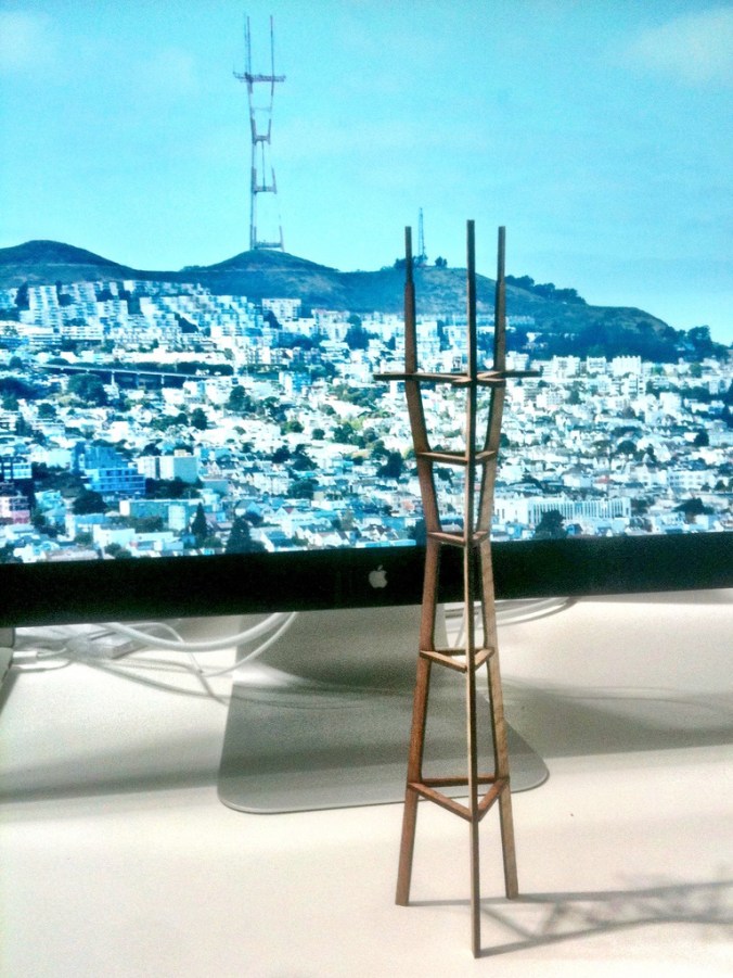 But for the sophisticated devotee who craves a 3-D representation of Sutro Tower, the options have been very, very limited. Until now. Through the miracle of modern laser-cutting technology, a local whiz named Aidan now offers 1/1000 wooden models of Sutro Tower for sale on Etsy, and they are superb.