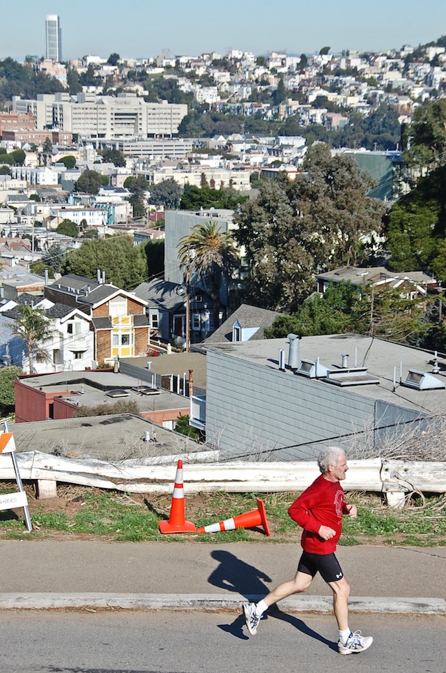 Inspired by that sexy issue of Runner’s World magazine that featured Bernal Heights on the cover, the San Francisco Road Runners Club has decided to invade Bernalwood tomorrow evening, and you’re invited to join them. If you run, and you enjoy company, meet for the group run tomorrow, Wednesday Sept. 23 beginning at 6:30 pm at Precita Park Cafe.
