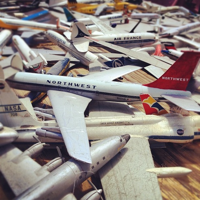 Sprawling across several display tables, one of the merchants was selling dozens and dozens and dozens of scale plastic model airplanes.