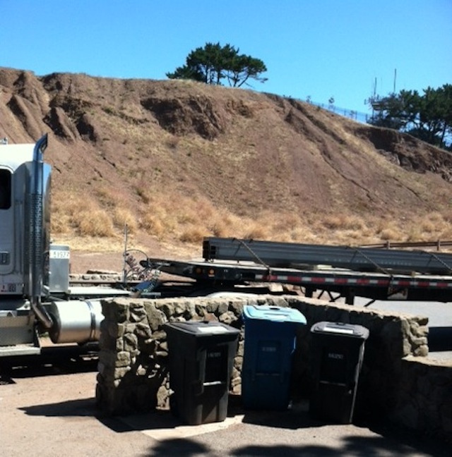 Another day in paradise. This big baby got through the Bernal gate for a retaining wall project on the street below.
