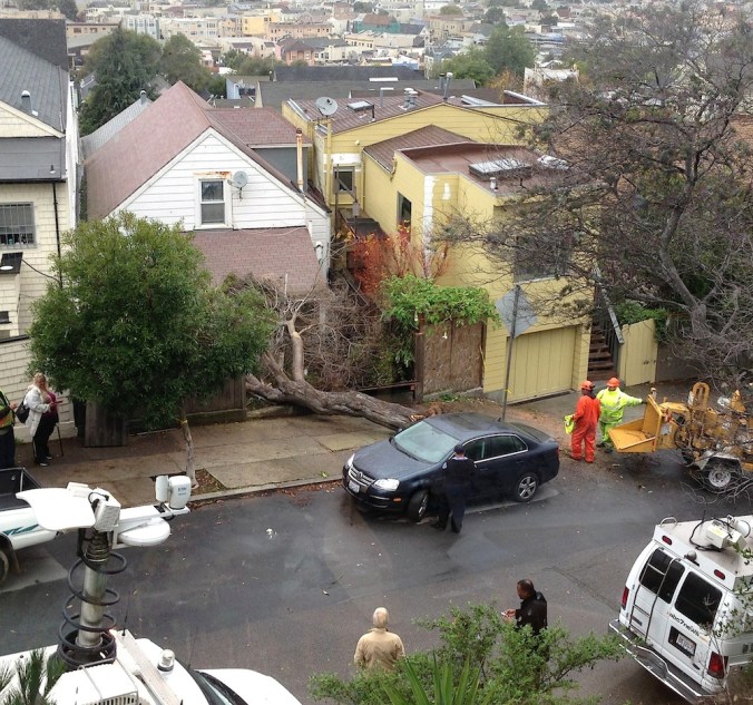 UPDATE 2: KGO-TV identifies City budget cuts, rather than Newtonian physics, as the cause of the tree’s collapse: