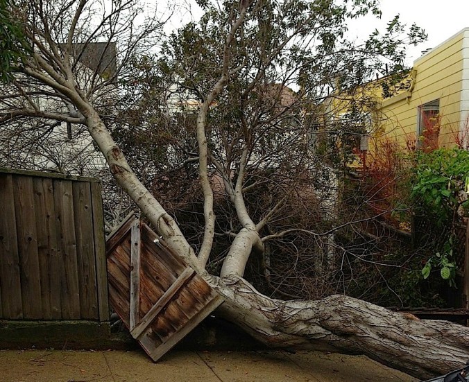 It probably wasn’t intended as a science experiment, but a big tree fell on the 300 block of Virginia during the wee hours of this morning, taking out a fence along the way. Neighbor Blair reports: