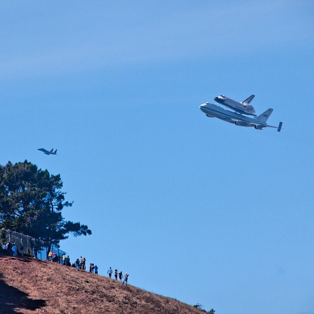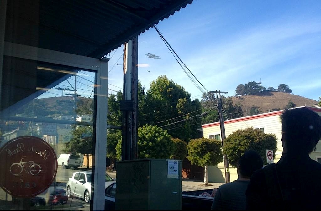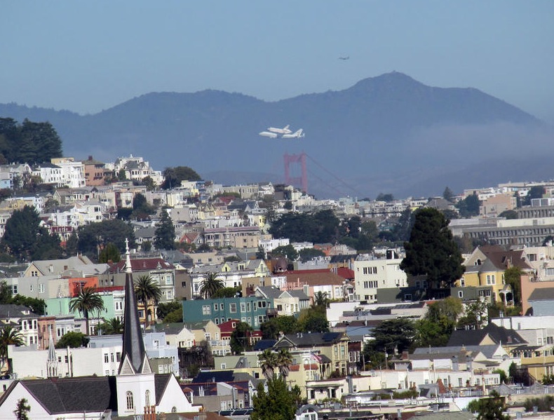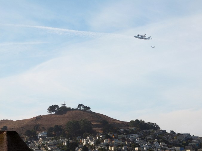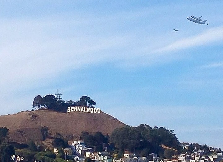 When we told you yesterday that the pilot of the Boeing 747 carrying the Space Shuttle Endeavour would be thinking of Bernal Heights as he flew over San Francisco, we weren’t kidding. But we didn’t realize that meant he would actually fly the thing right over our neighborhood!