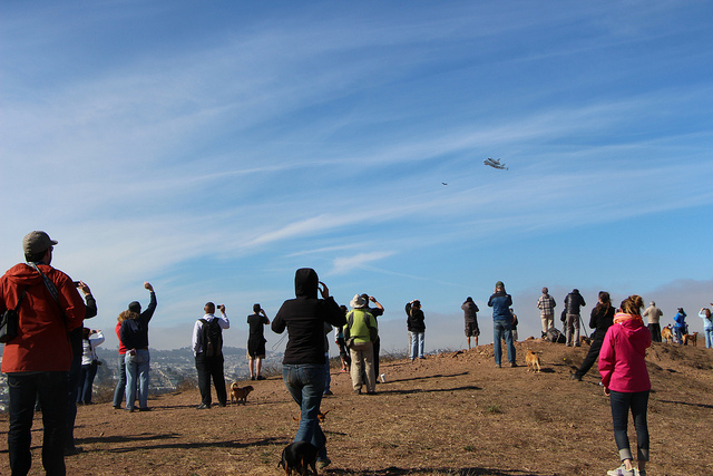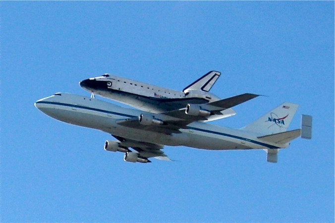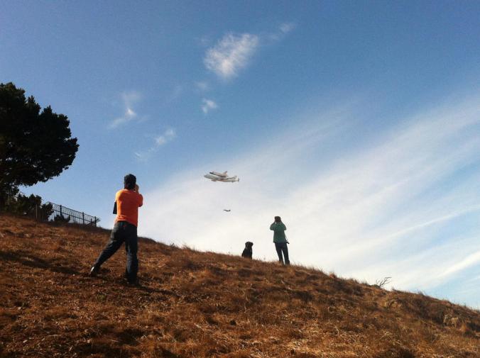 Yet that’s what happened (because Bernalwood is glamorous like that). A little after 10 am today, Shuttle Endeavour made a big sweeping pass over Sutrito Tower and the Dominion of Bernalwood, amid much rejoicing and clicking of camera shutters.